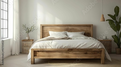 Inviting bedroom with wooden bed, soft linens, and natural light, creating a serene and cozy atmosphere for relaxation.