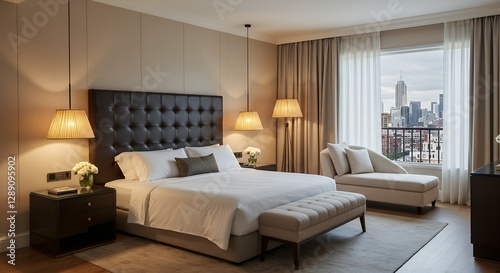 Inviting Hotel Bedroom Suite with City View and Modern Interior Design