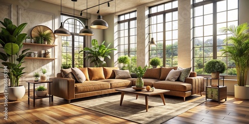 Inviting Stock House Interior with Cozy Living Room and Natural Lighting, Perfect for Real Estate Listings and Home Decor Inspiration