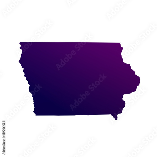 Iowa map isolated on transparent white background. Blue and purple gradient textured map isolated on transparent png