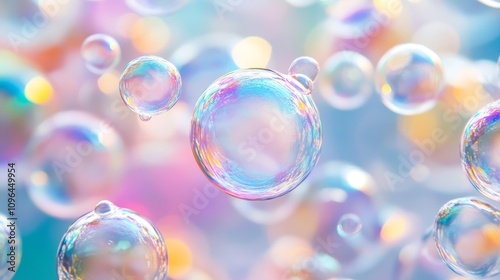 Iridescent Bubbles Abstract Background - Dreamy, ethereal, colorful bubbles float, symbolizing purity, joy, fragility, and magic.
