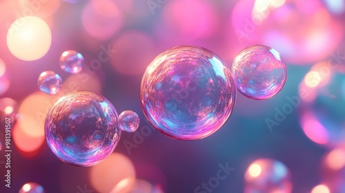 Iridescent Bubbles Floating in a Colorful, Blurred Background