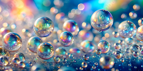 Iridescent Bubbles of Joy: A vibrant and ethereal macro shot captures the mesmerizing dance of iridescent bubbles, suspended in a symphony of colors, reflecting a kaleidoscope of light.