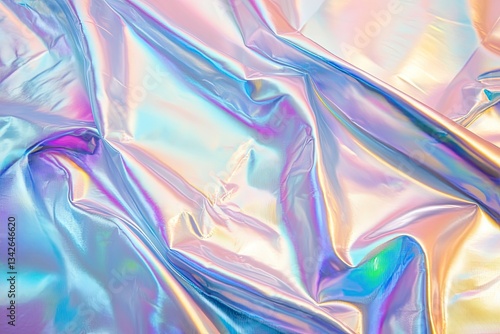 Iridescent fabric with flowing folds and pastel rainbow colors.