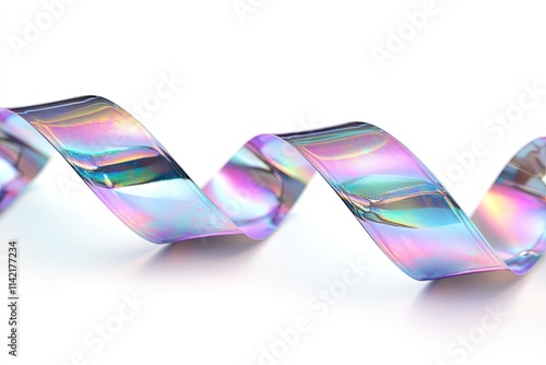 Iridescent ribbon with vibrant hues in spiral form on white background