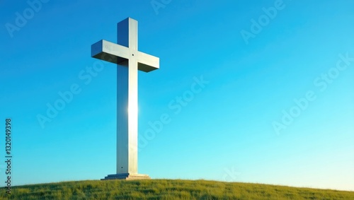 Iron cross sculpture situated on the hilltop overlooking the city.