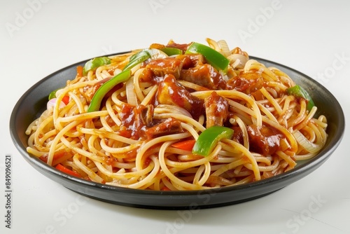 isolated, white, background, plate, culinary arts, delectable, epicure, spaghetti