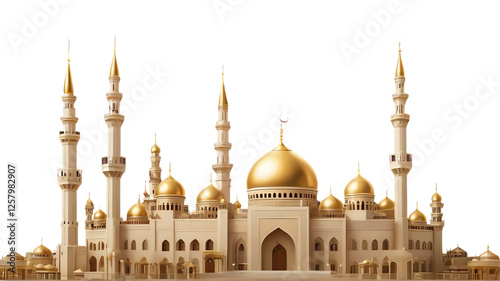 Islamic Mosque with Green Dome and Minaret – Transparent PNG, High-Quality Islamic Architecture