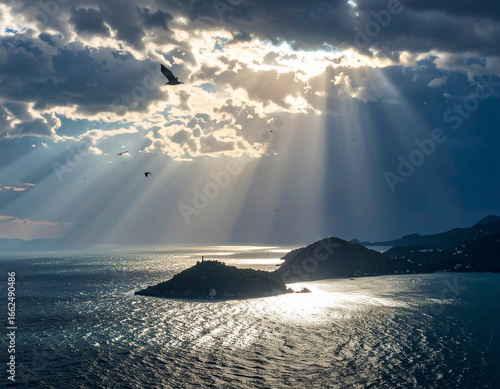 sky, sea, sun, ocean, water, cloud, cloud, sunset, nature, landscape, light, storm, rainbow, sunrise, weather, sunlight, beach, horizon, ray, sunbeam, island, summer, coast, dusk