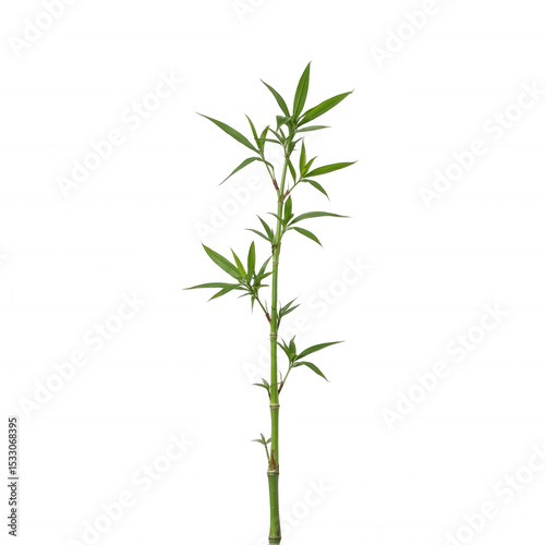 Isolated bamboo plant stalk with green leaves on black background stock photo on transparent background