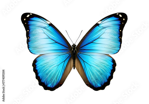 Isolated Blue Morpho butterfly with open wings , Butterfly Isolated on White