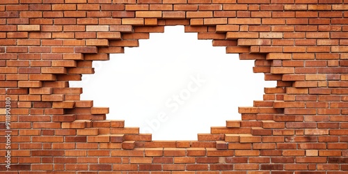 isolated broken red brick wall with a large hole, isolated on a pure white transparent background, cut out for easy integration into any design