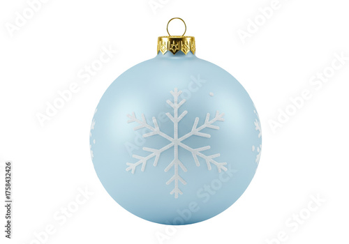 Isolated Christmas Ornament Ball, Light Blue Holiday Decoration with Snowflake Design, Ornament