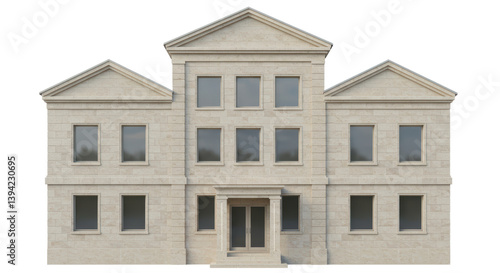 Isolated Classic Stone Building with Multiple Windows Architecture