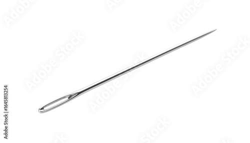 Isolated closeup of a sharp steel needle, a medical or sewing tool, on a white background