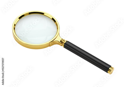 Isolated Elegant Magnifying Glass Gold Trim Black Handle