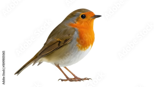 Isolated European Robin, Erithacus rubecula, perched and looking left in perfect focus
