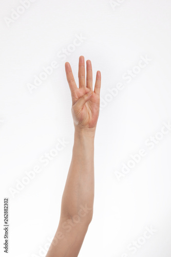 hand, isolated, finger, arm, signs, white, woman, human, gesture, palm, finger, wrist, hand, thumb, symbol, 5, up, number, person, gesticulate, body, concept, 2, counting, people, woman, white background, human hand, cut-out, female, reaching, pushing, handful, open, pointing, winning, buying, horizontal, technology, writing, adults only, adult, direction, human finger