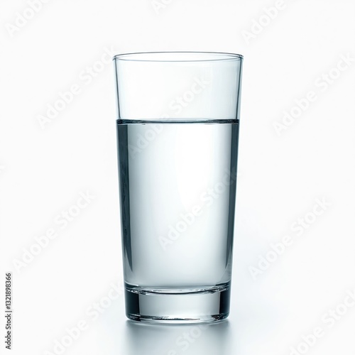 Isolated glass of clear potable water. Refreshing transparent liquid drink, pure, transparent. Simple object on white background. Hydration concept, thirst quenching. Useful graphic resource for
