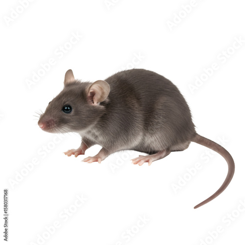 Isolated Gray Mouse Rodent with Furry Tail in a Transparent Background