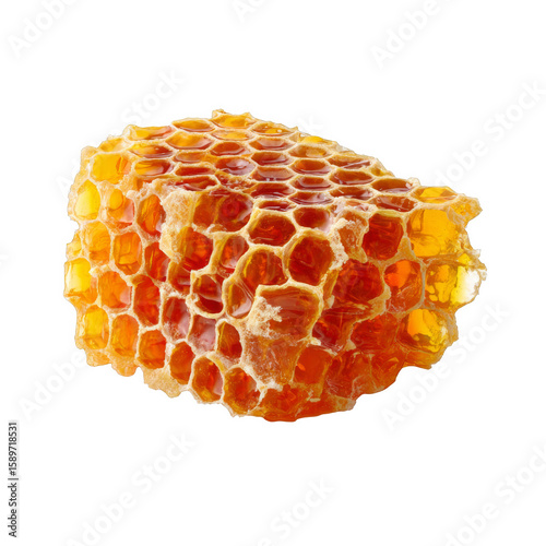 Isolated Honeycomb Fragment on a White Backdrop Perfect for Creative and Culinary Use