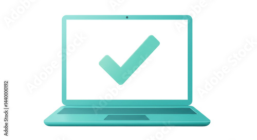 laptop, checkmark, computer, screen, technology, illustration, isolated, digital, desktop, clip art, three-dimensional, render, transparent, cartoon, commercial, decorative, artistic, graphic, business, success, approval