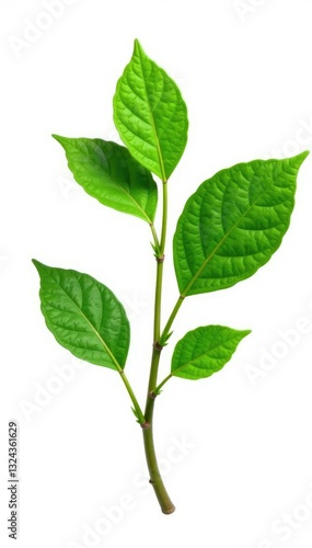 isolated leafy branch on pure white background, tree_bark, plant_branch