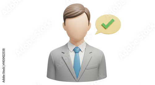 approving, avatar, checkmark, speech bubble, male, person, business, agreements, isolated, illustration, three-dimensional, render, cartoon, character, communication, online, web, design, graphic, icon, symbol, confirmation, positive, approval