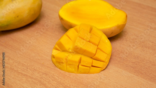 Isolated mango. Fresh organic mango with isolated clipping path. Mango macro studio photo. Mango slice.