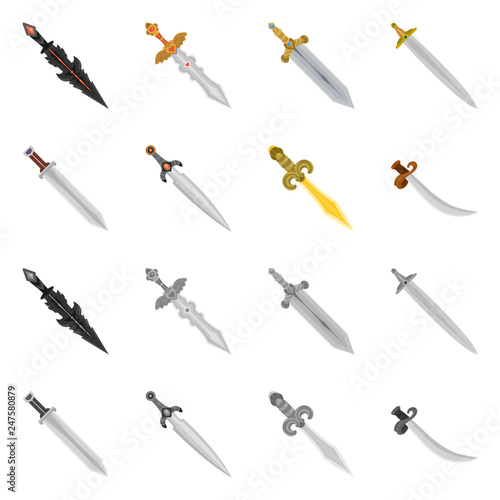 Isolated object of game and armor sign. Set of game and blade stock vector illustration.