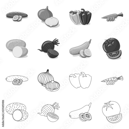Isolated object of vegetable and fruit icon. Set of vegetable and vegetarian stock symbol for web.