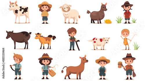 isolated, cute, farm, animal, illustration, nature, white, background, children, domestic, cartoon, baby, vector, character, set, design, funny, art, farm animal, sheep, chicken, drawing, agriculture, children, children, cow, bird, happy, pet, dog, duck, collection, hen, pig, rabbit, rooster, goat, cat, horse, donkey, graphic, wild, animal, icon, young, fun