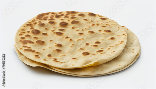 Isolated on a white background, chapati or tanturi roti