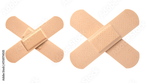 Isolated on Transparent Background Two Light Beige Adhesive Bandages Crossed in X Shape, Realistic Texture