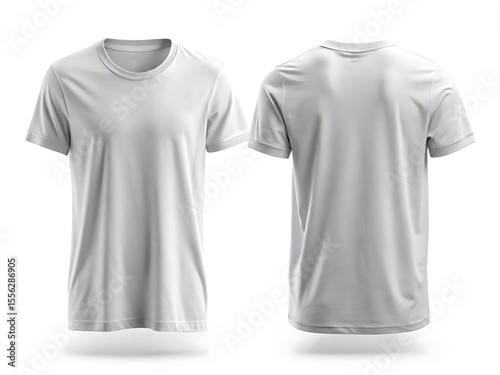 Isolated on white background, a white tshirt is shown from the front and back in a 3d rendering