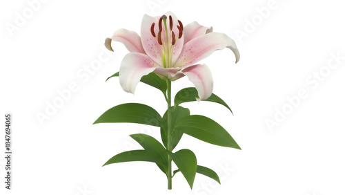 Isolated Oriental Lily flower, pink and white single stem, beautiful bloom, decorative petal