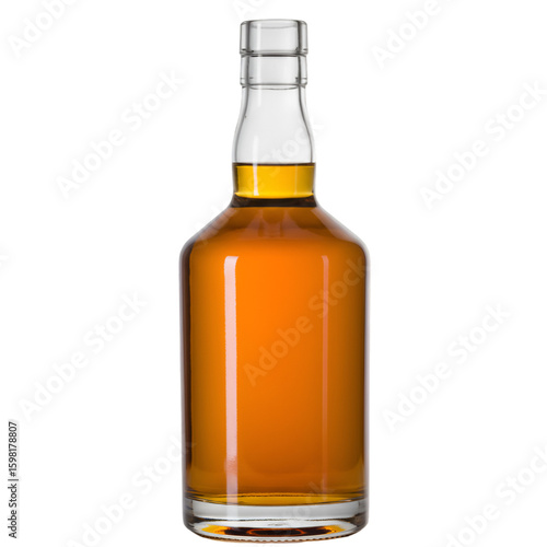 Isolated Photo of Amber Whiskey in Glass Bottle on Black Background