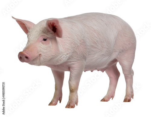 Isolated PNG image of a pig, on a transparent background. Ideal for educational, agricultural, advertising and graphic design projects related to animal husbandry, breeding and the food sector.