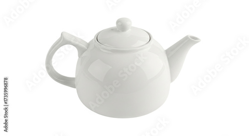 Isolated porcelain teapot with round body and lid, simple serving beverage vessel