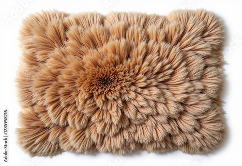 Isolated Rug Edge: Ultra-Realistic Top View of a Light Brown, Fuzzy Rug, Displayed Against a Clean White Background for Design & Texture Emphasis.