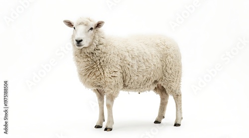 sheep, animal, mammal, wool, white, isolated, fur, fluffy, farm animal, domestic, farm, agriculture, nature, wildlife, portrait, standing, looking, clean, background, texture, studio, cut-out, copy space, commercial, editorial, design, concept, product, image, illustration, template, advertising, marketing, presentation, website, blog, resource, visual, element, domesticated