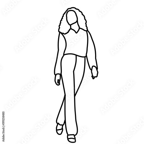 isolated sketch girl is walking
