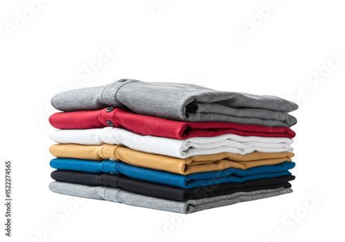 Isolated Stacked Folded Clothing Shirts in Gray Red White Gold Blue Black