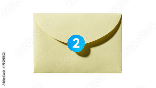 Isolated traditional envelope with a blue notification badge showing number two, important message concept