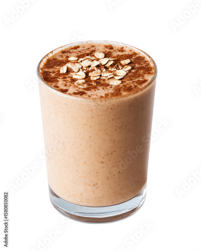 Isolated transparent png Breakfast Dishes classic smoothie Creamy smoothie topped with oats, served in a clear glass.