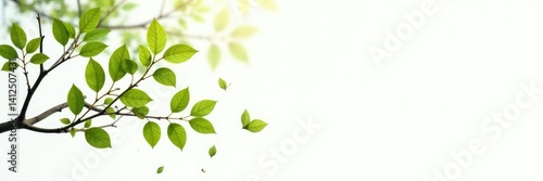 Isolated tree branches with leaves on a white background, foliage, minimalist