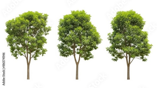 Isolated Trees on White Background Lush Green Foliage, Cutout, Nature Element