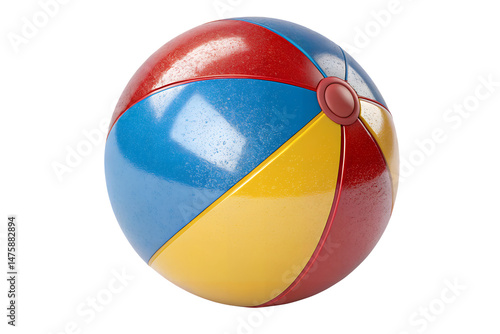 Isolated view of a colorful beach ball with red blue and yellow panels design on transparent background