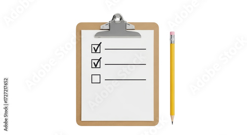Isolated view of clipboard with checklist and pencil for survey or planning tasks