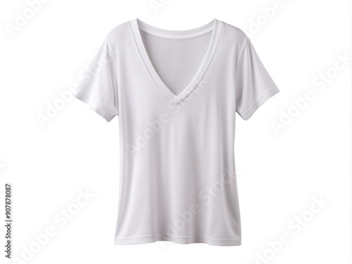 Isolated white blouse with casual fit and V-neckline hanging on invisible clothesline against a crystal-clear transparent background, perfect for e-commerce and advertising use.